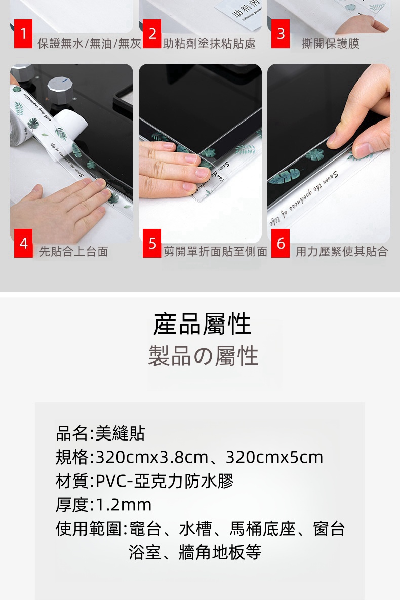 5分鐘前限時搶購 美縫貼防水防霉廚房水槽洗碗灶台封邊擋水條,衛生間馬桶邊緣縫隙貼 - 【嘗鮮價】3入組-NT$980
