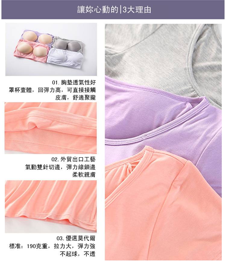 20分鐘前【廠家直銷 買一送一】夏季爆款莫代爾帶胸墊可外穿家居短袖,一體式無鋼圈設計,方便舒適,告別鋼圈束縛,柔軟莫代爾面料,不舒服包退!限時售價!買到賺到 - 【買一送三】任選4件 均價299