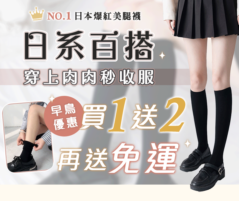 4分鐘前微壓顯瘦小腿襪 - 買一送二/ 再送免運 NT$499