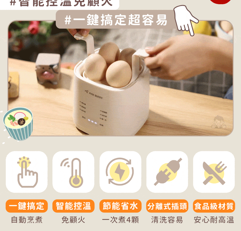 半小時前Pink Bunny智能煮蛋機智能控溫烹煮,營養美味輕鬆上桌 - Pink Bunny智能煮蛋機2入組 NT$1990
