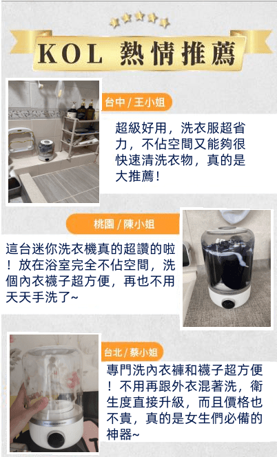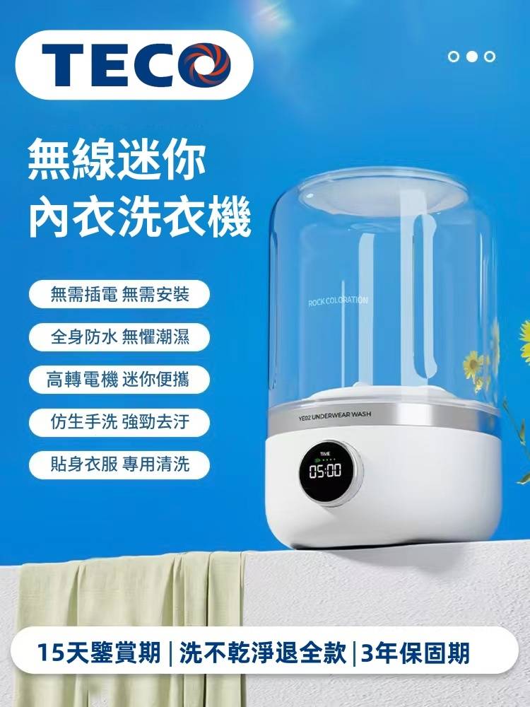 25分鐘前玉如阿姨獨家推出TECO迷你洗衣機,一鍵啟動解放雙手含銀離子持久抑菌,小巧機身功能齊全整機防水防潮防濕 - 內衣內褲分開洗 限時特惠 二入組NT$1990